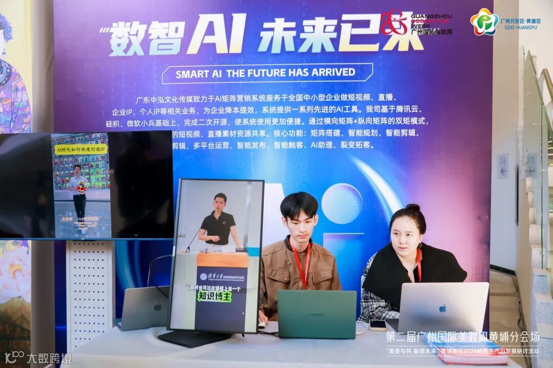 在AI直播工具展示区,南方美谷园区企业中泓传媒也为现场嘉宾提供AI技术“零距离”体验,该技术能为美妆企业实现多国别语言AI数字人演示,赋能本土美妆品牌扬帆出海。