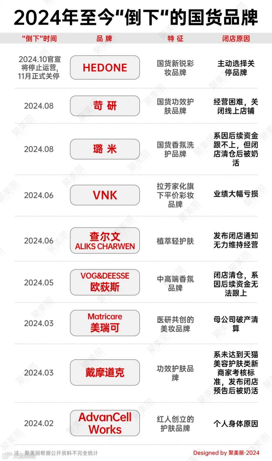 国货新锐彩妆品牌HEDONE更是倒在了双11前夕,其10月10日宣布停止品牌运营,11月9日正式结业。(详见)