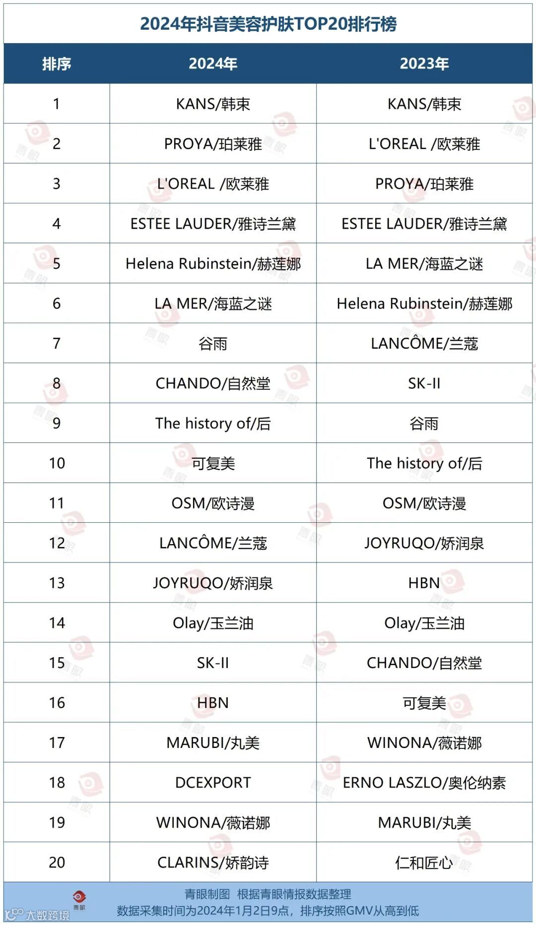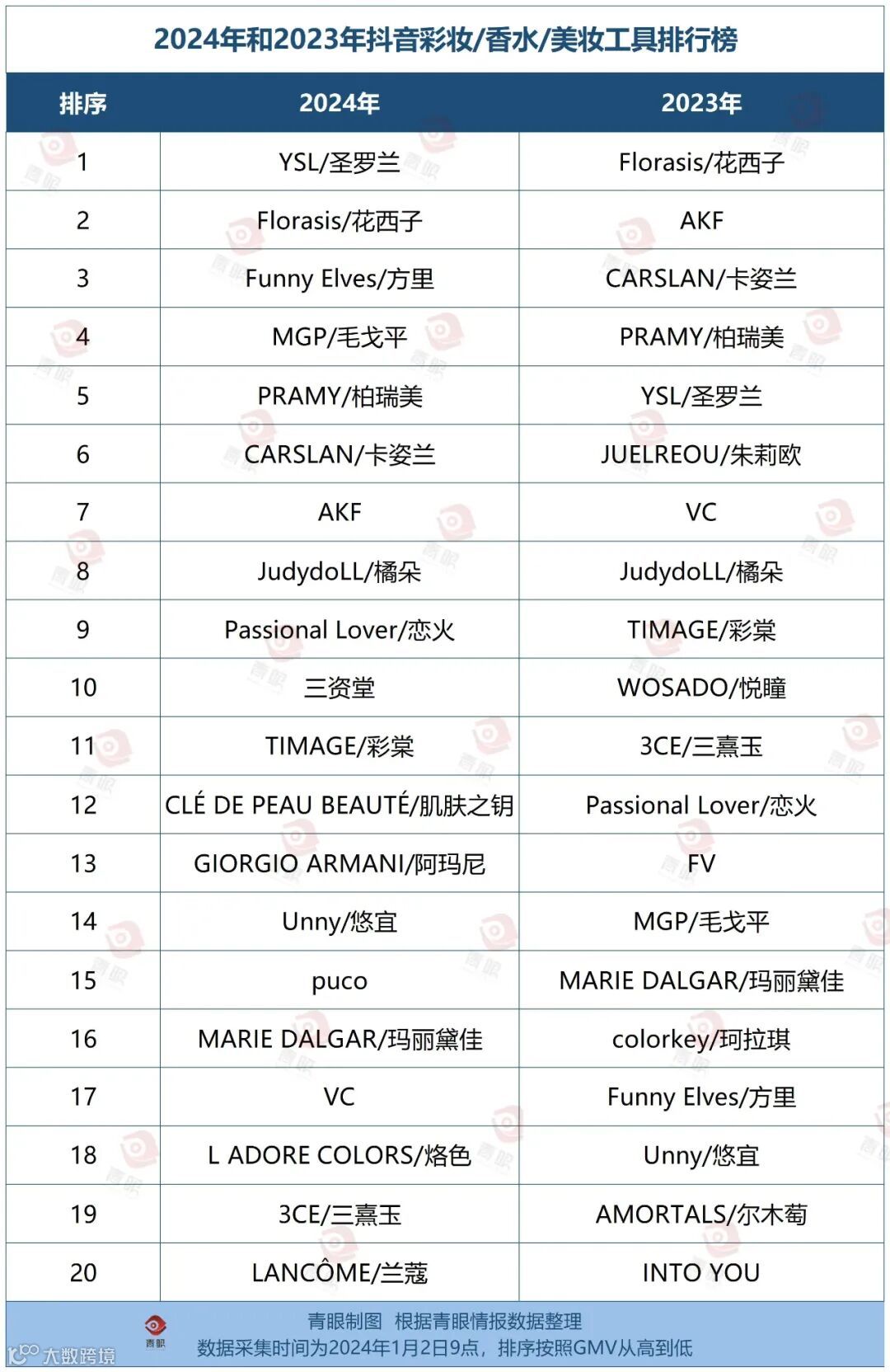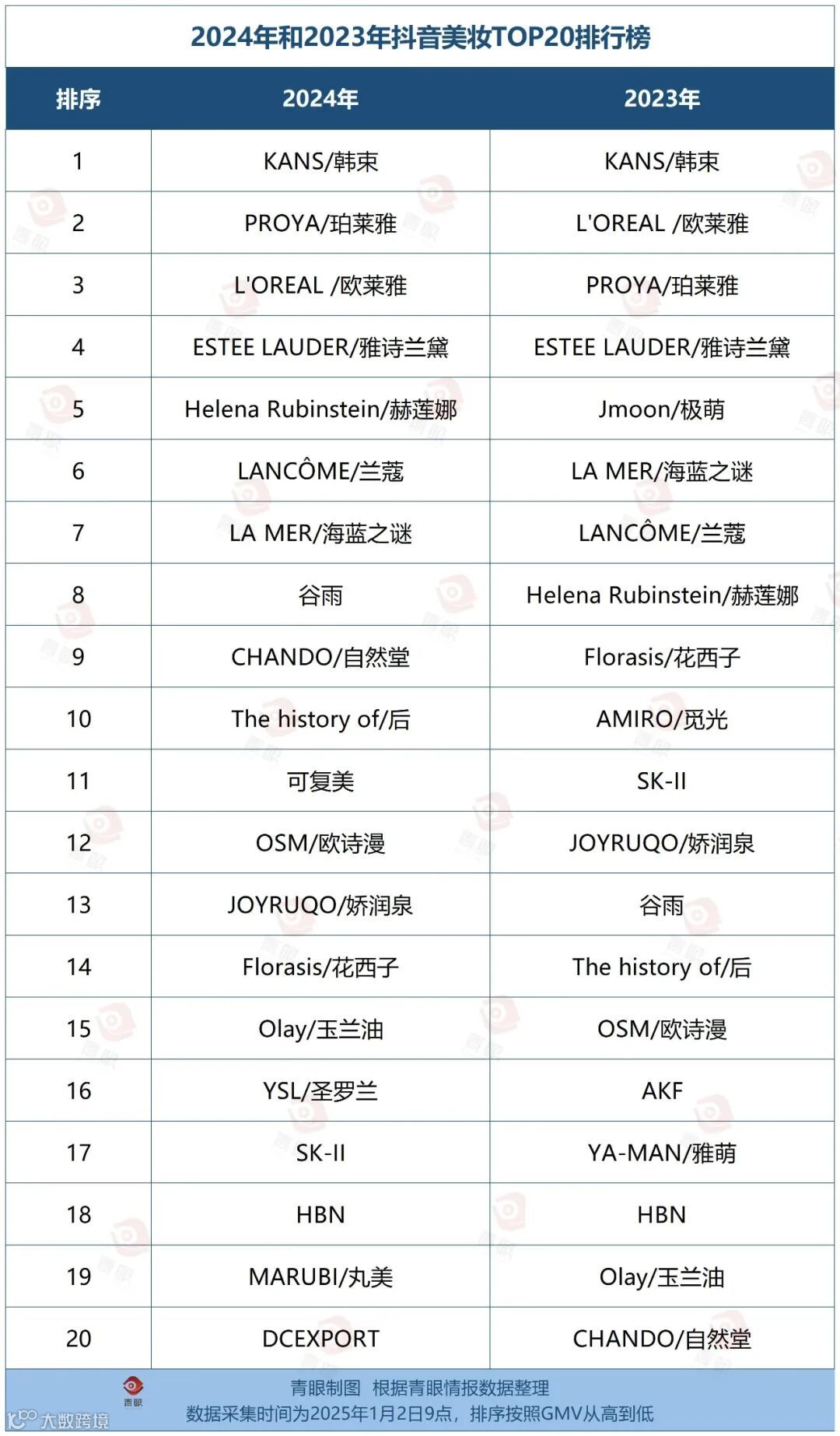 那么,在刚刚结束的2024整年当中,哪些品牌登上了抖音美妆TOP20的榜单,排名又出现了怎样的变化?反映出什么样的行业趋势?