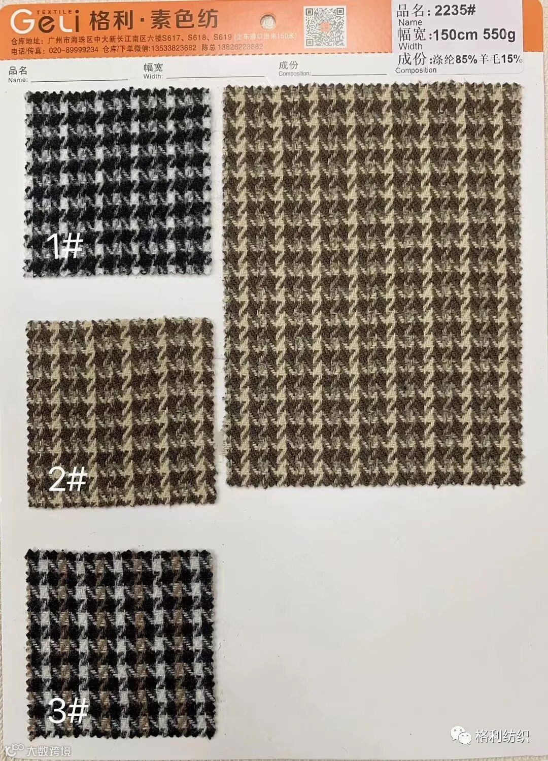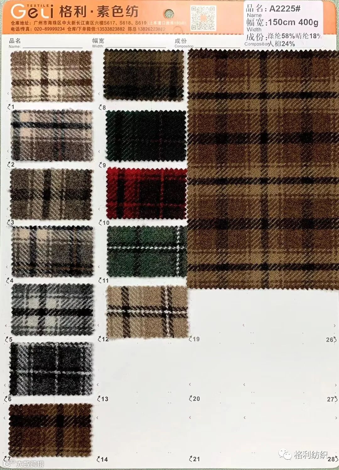 感谢您关注广州新格利®纺织 ,我公司专业从事面料生产开发,TR色织格条,素色小香风,TR双色乐丽丝系列。欢迎广大客户前来咨询采购!地址:广州市海珠区中大新长江北区三楼N3183。☎️电话020 89999234 手机:13826223882