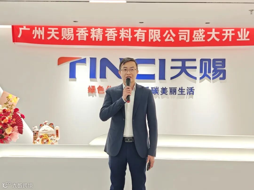南方美谷(广州)集团董事长钟润强在活动中致辞,对天赐香精香料的盛大开业表示热烈的祝贺,坚信天赐香精香料会在南方美谷这片沃土上开满成功的花。