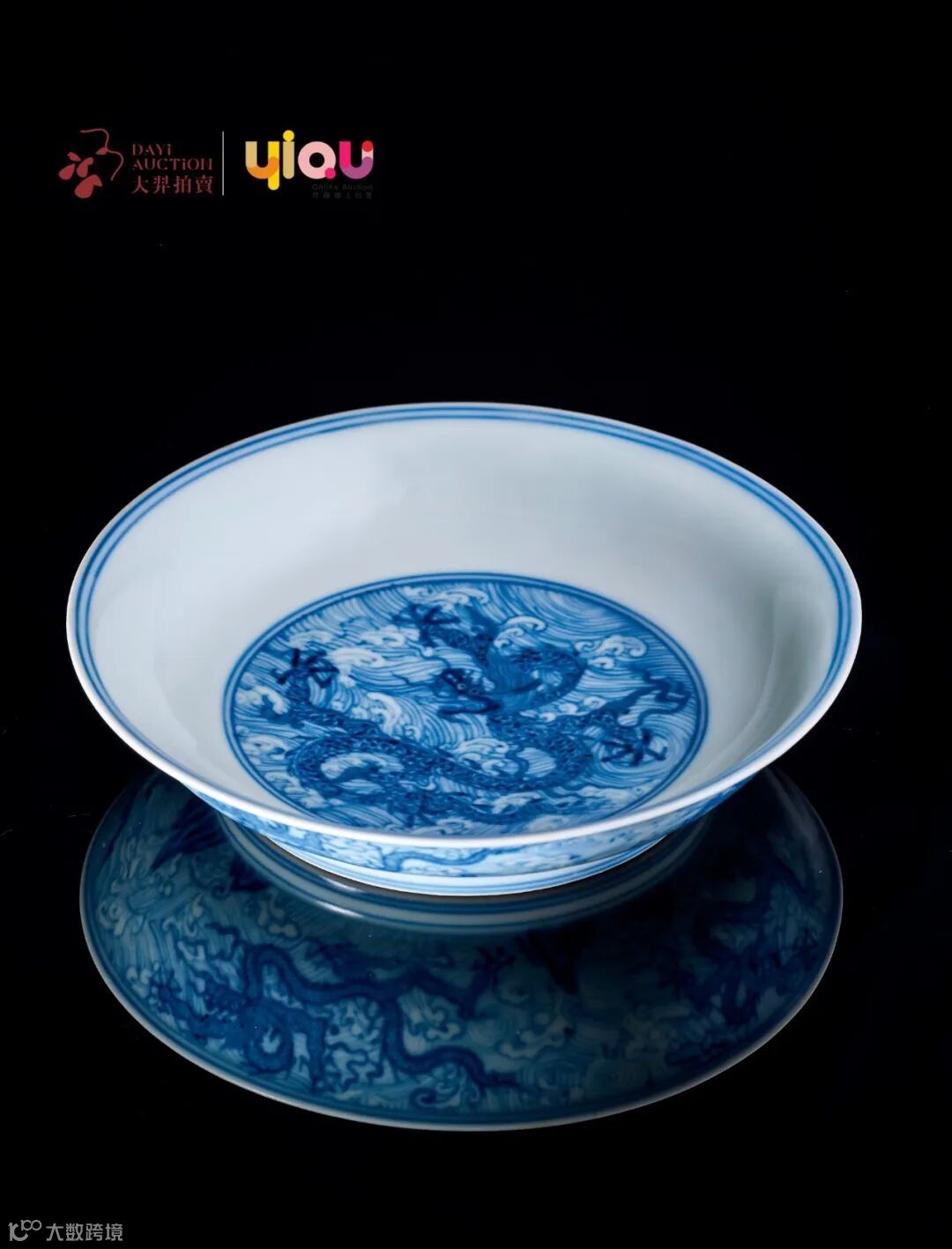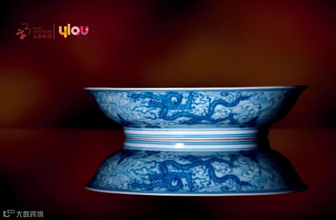 更值得关注的是,在梳理公私藏家的珍贵典藏资料时,我们有了一个重要发现:大英博物馆藏有一只宣德时期的青花云龙海水纹盘,其器型轮廓与纹饰细节,竟与本次上拍的这件作品非常一致。这一发现清晰地勾勒出此类器物的传承脉络,它直接承袭了宣德青花的经典造型与纹饰,尤其完整保留了宣德龙纹特有的雄浑气势。
