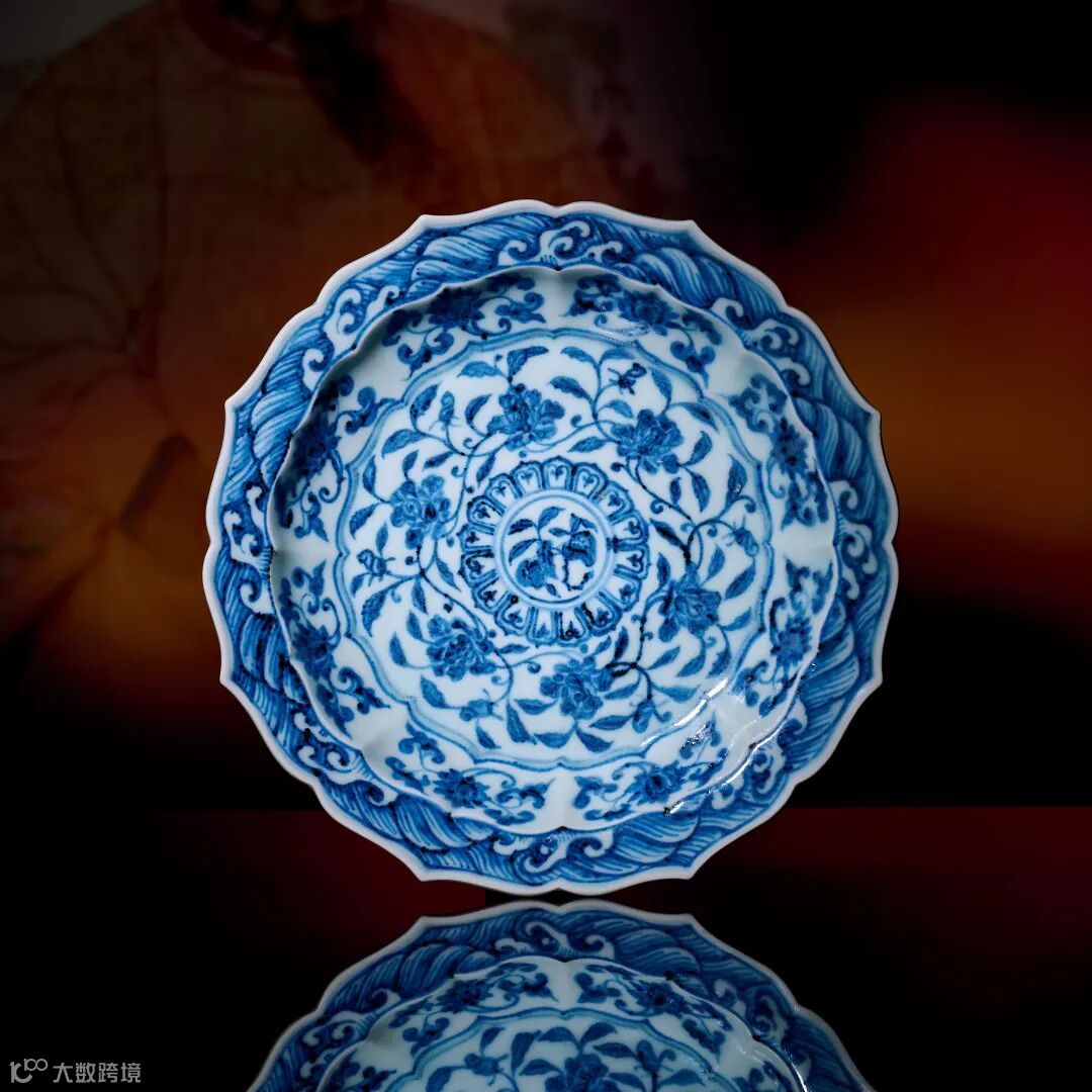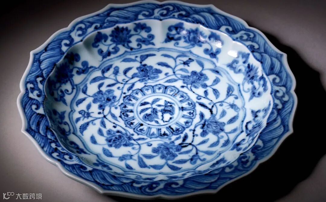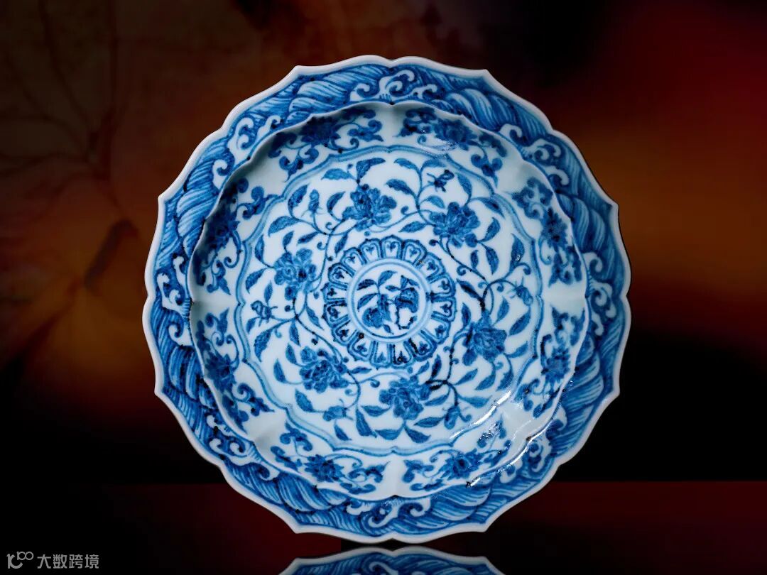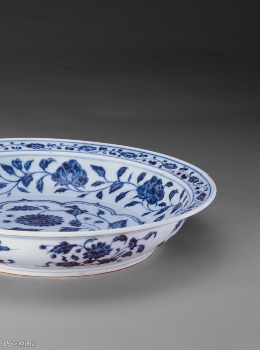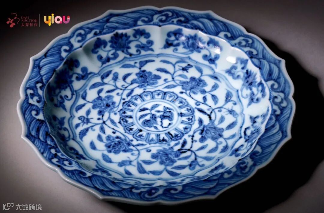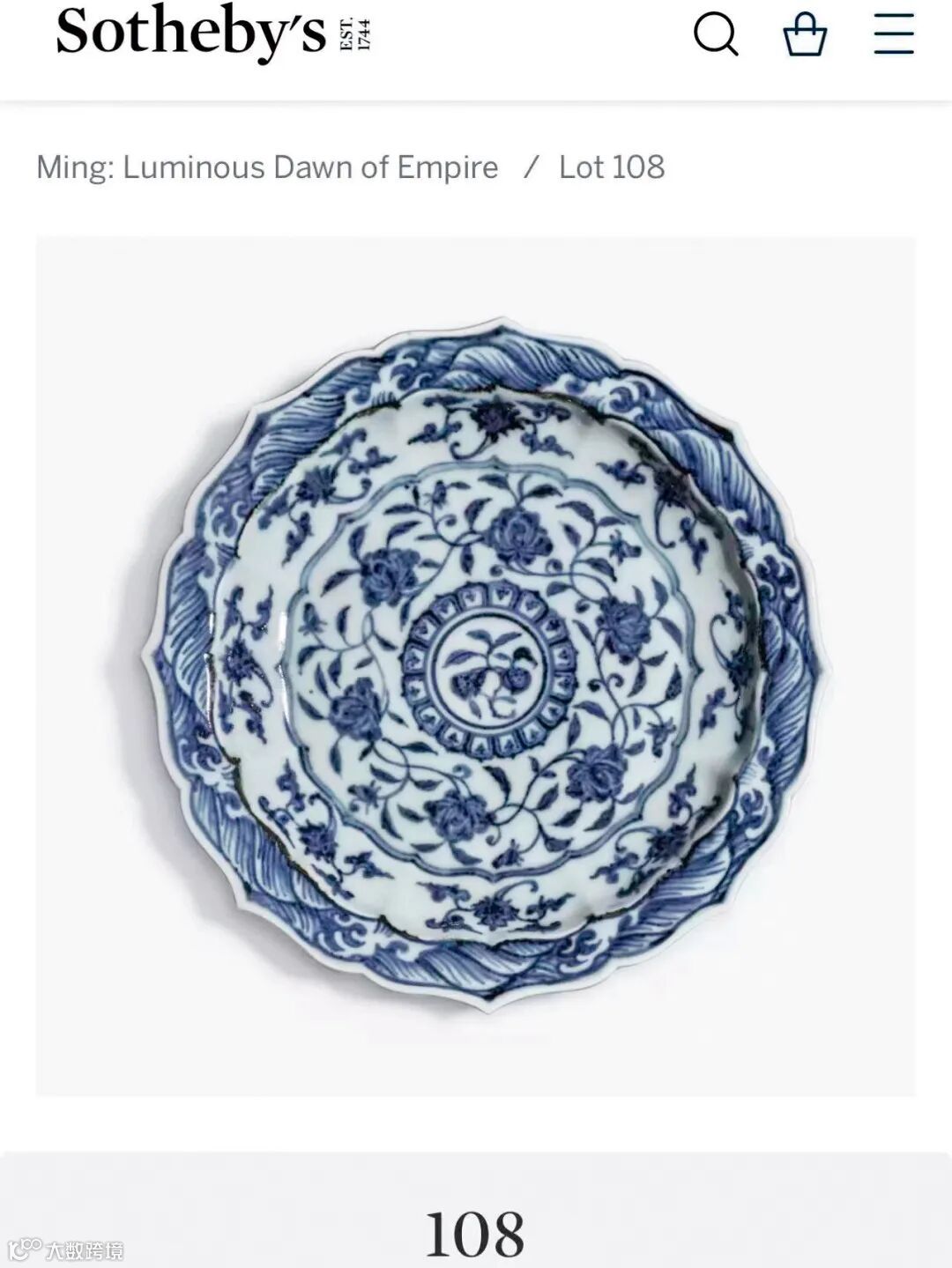 右:纽约苏富比 2018 年 3 月 20 日 编号 108 明永乐 青花缠枝花卉纹海水折沿菱口盘 成交价 USD:591,000