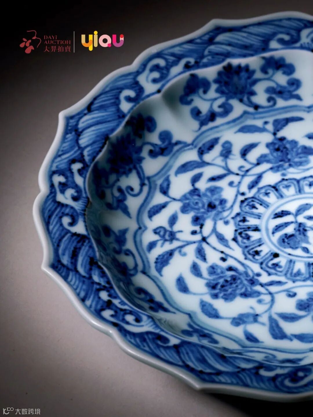 左:LOT642 明永乐 青花缠枝花卉纹海水折沿菱口盘(本品)