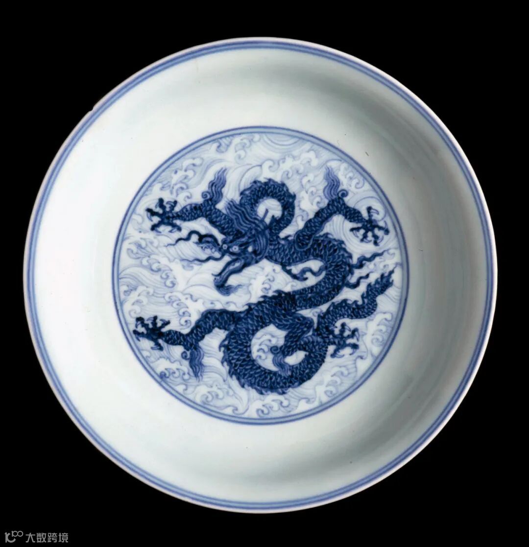 右:大英博物馆藏 明宣德 青花海水龙纹盘