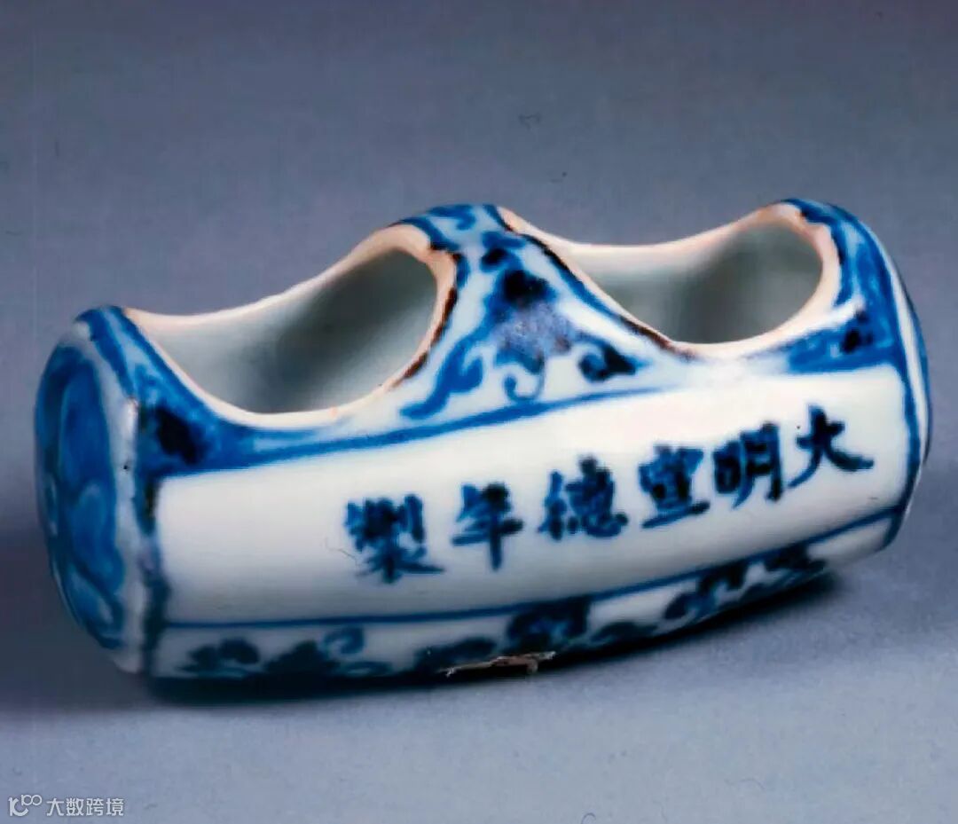 明宣德 青花双联鸟食罐 1984 年出土于珠山宣德地层