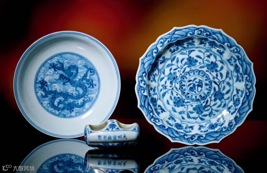 右:北京故宫博物院藏 明成化 青花云龙纹盘