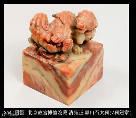 “狮”与“师”同音,狮是尊贵和威严的象征,人们借用谐音,用一大一小两只狮子组成太师少师。其样式常为一只狮子怀抱幼狮或者两爪间有一只幼狮。借谐音太师少师。北京故宫博物院收藏有一只清雍正寿山石太狮少狮钮“亲贤爱民”印,其形制与本件拍品类似,可作参阅。 养正书屋是清朝嘉庆皇帝在嘉庆元年(1796年)御书赐予皇子旻宁(即后来的道光皇帝)在园中读书之处的匾额。“养正”取“蒙以养正圣功”“君予以果行育德”“育德者养正之功”之义。
