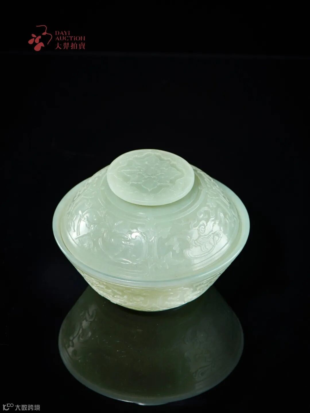 白玉雕八吉祥盖碗