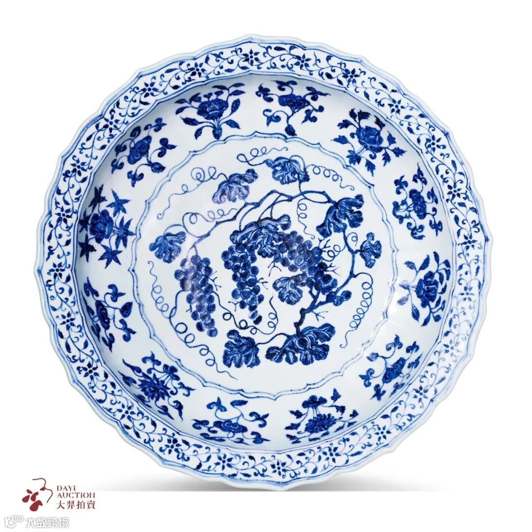 青花葡萄纹菱口大盘