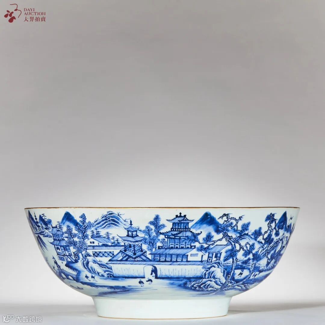 青花山水图披麻皴大碗
