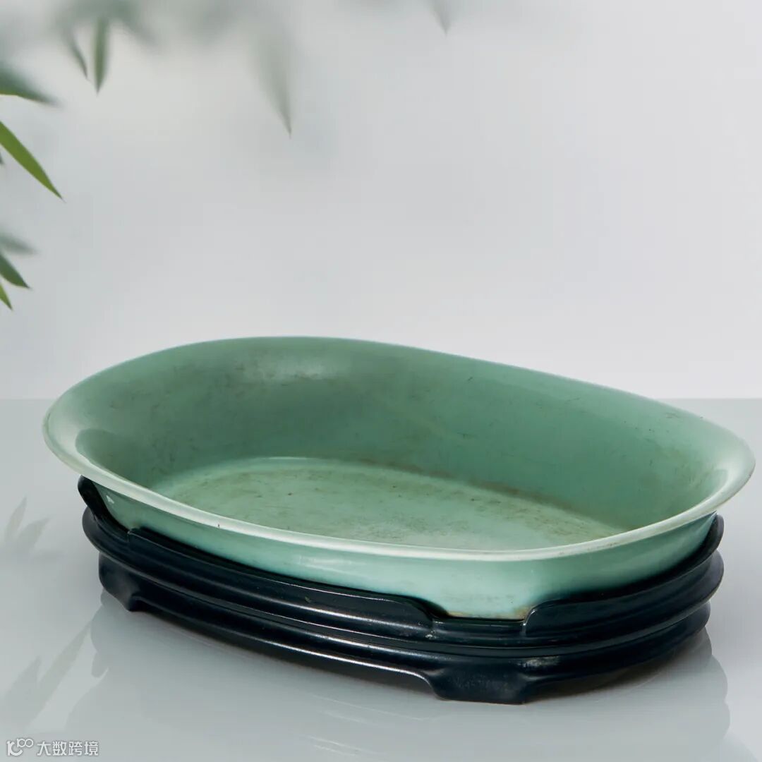 清雍正粉青釉椭圆式连座盆以41.4万元成交,成为本场拍卖的另一亮点。此盆器身与底座一体成型,釉色古朴莹润,展现了雍正时期制瓷技艺的巅峰水准。作为仿宋器的代表,它不仅体现了唐英高超的制瓷技艺,也反映了雍正皇帝对古典美学的推崇。拍卖现场,竞价激烈,最终以41.4万元成交,凸显了市场对雍正时期单色釉瓷器的高度认可。