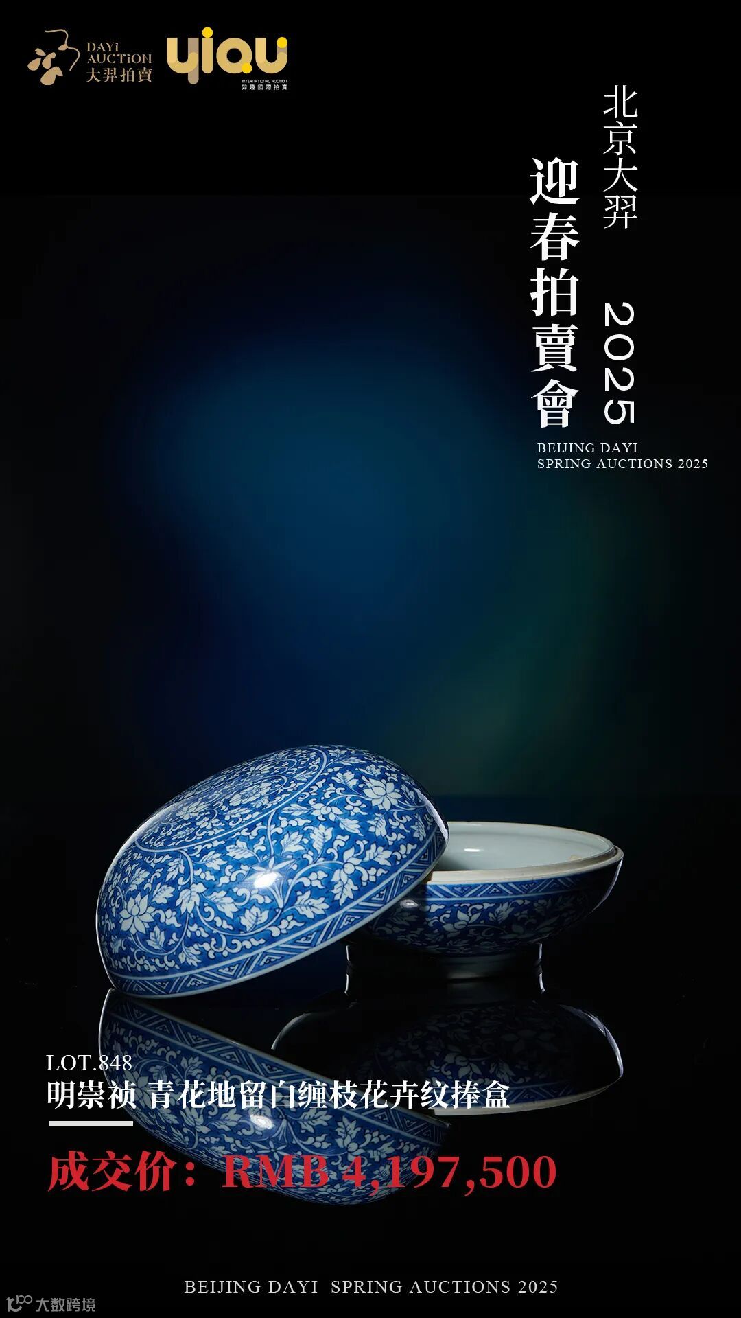 此件拍品,从权威专家的经典点评到资深藏家的深度解读,从核心媒体的多维报道到自媒体达人的趣味解码与美学剖析,「网红崇祯捧盒」形成了权威与流量的双重加持;抖音、小红书、微信视频号多平台联动,短视频中青花留白的工艺之美、仇焱之旧藏的传奇故事、纹饰背后的文化隐喻,引发全网热议,让古董瓷器真正「活」在当下。