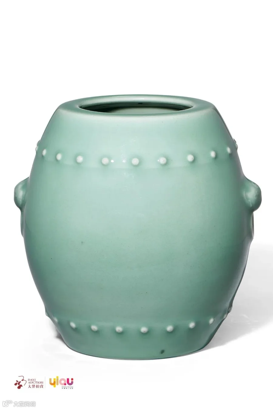 乾隆青釉鼓钉罐的造型更具深意。鼓形器身暗合《周礼》"以六律、六同、五声、八音、六舞大合乐"的礼乐制度,铺首衔环象征"天圆地方"的宇宙秩序。其青釉堆若凝脂,釉色直追宋代龙泉梅子青,在莹润如玉的质感中,寄托着文人"比德于玉"的君子情怀。这种仿古而不泥古的造物智慧,正是书房文化"致广大而尽精微"的生动写照。