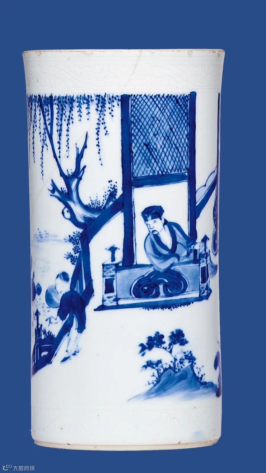 青花周敦颐爱莲图笔筒