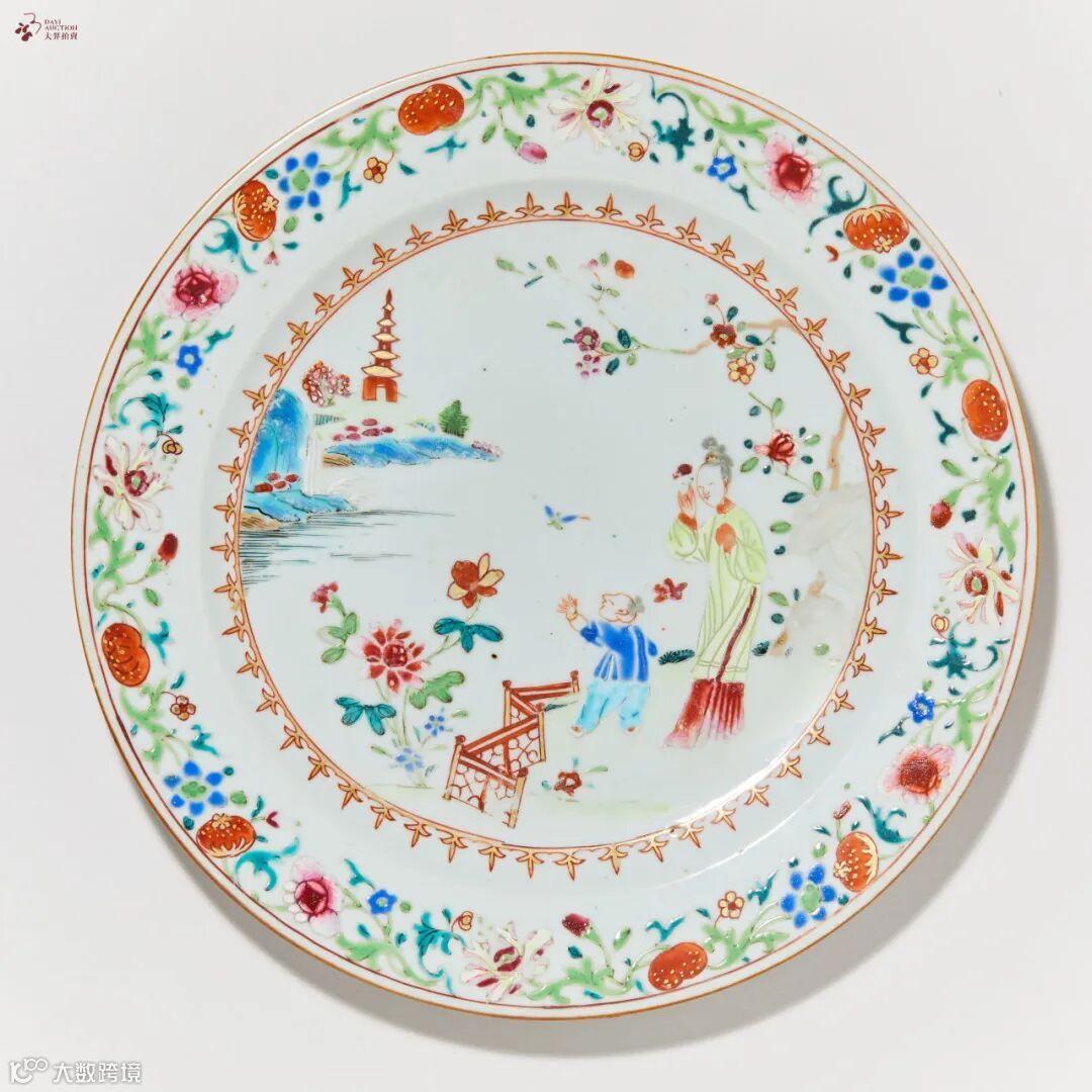 粉彩教子图赏盘