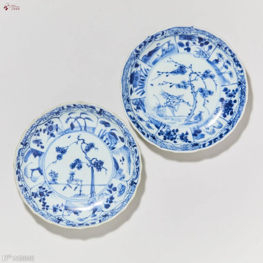 青花松鹿图赏盘(一对)