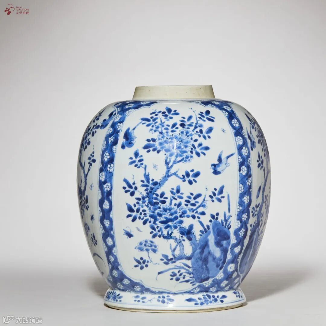 青花开窗花鸟纹罐