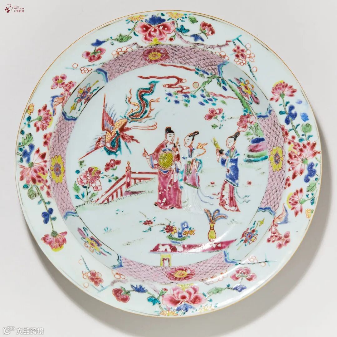 粉彩吹箫引风折沿盘