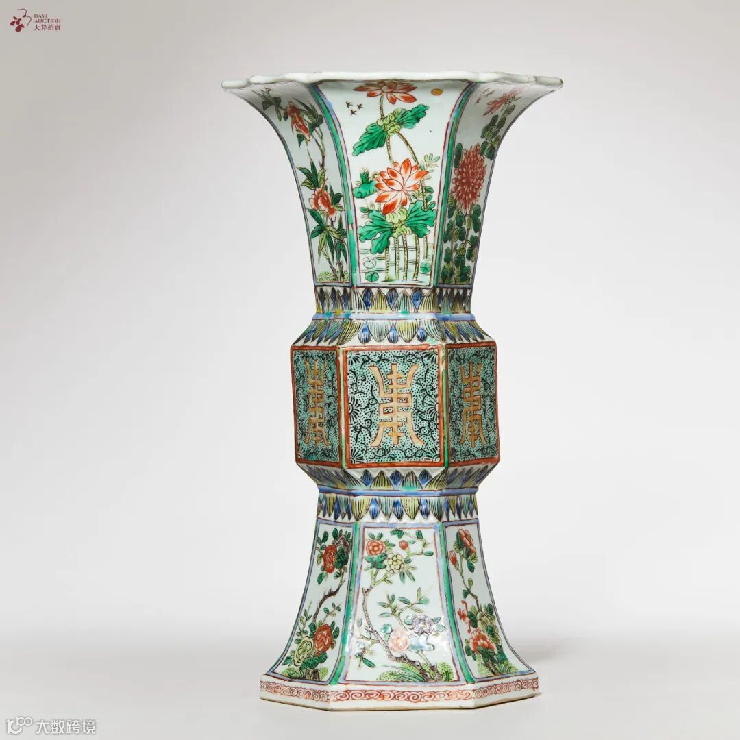 五彩六方花鸟寿字纹花觚