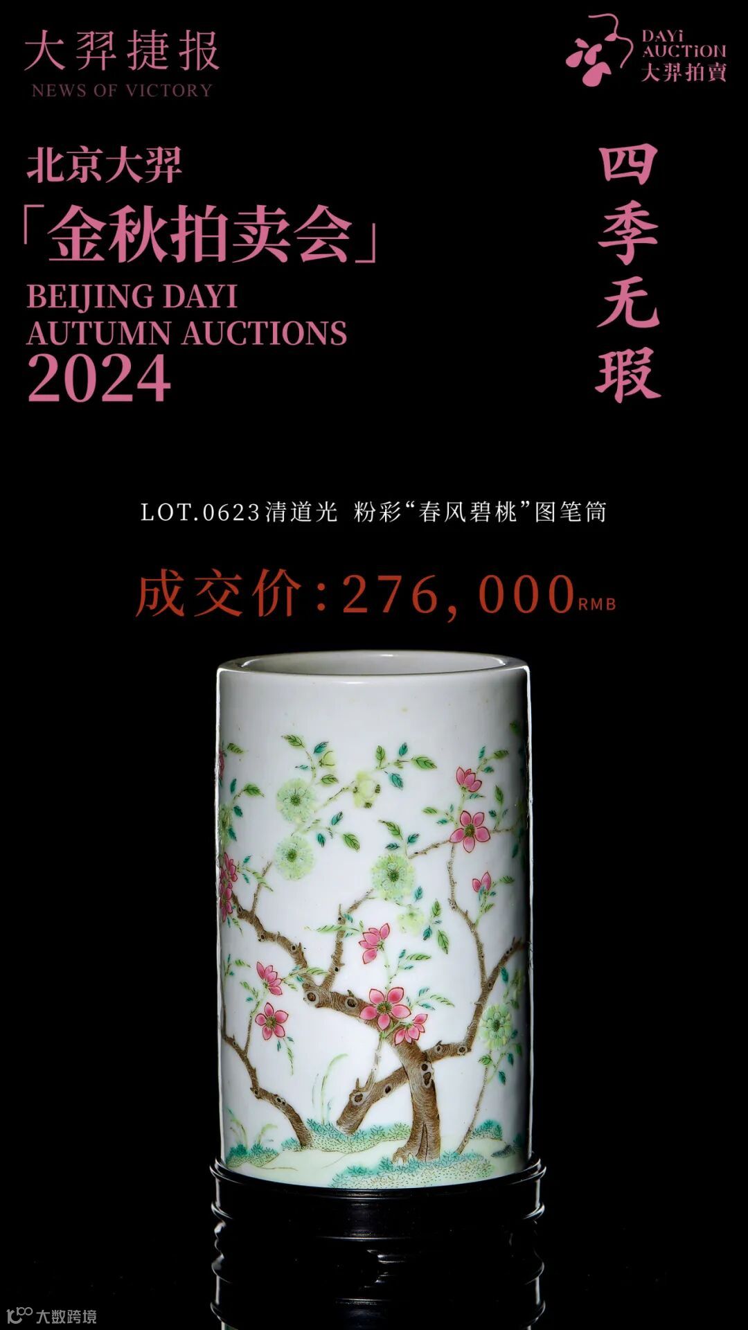 北京大羿 2024 年金秋拍卖会已于 10 月 13 日举槌。其中,重磅首推的品牌专场「四季无瑕」不负众望,成绩斐然,众多拍品皆以超出最高估价成交。在拍卖师的此起彼伏落槌声中,「四季无瑕」专场赢得了在场藏家和艺术爱好者的高度肯定。与此同时,「瓷器工艺品」专场的多件拍品亦有着颇为不俗的表现。
