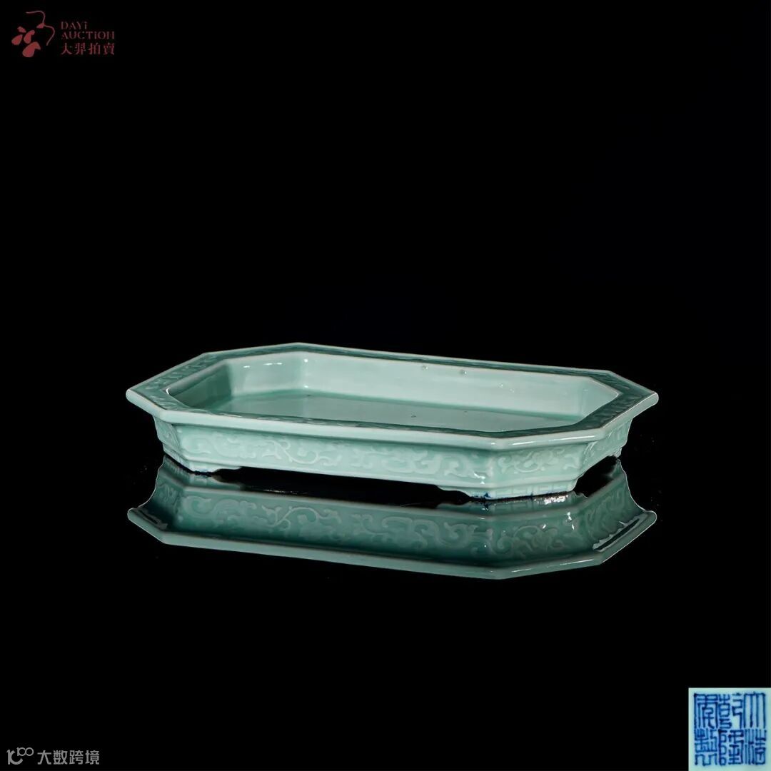 清乾隆 粉青釉穿花龙纹八方水仙盆