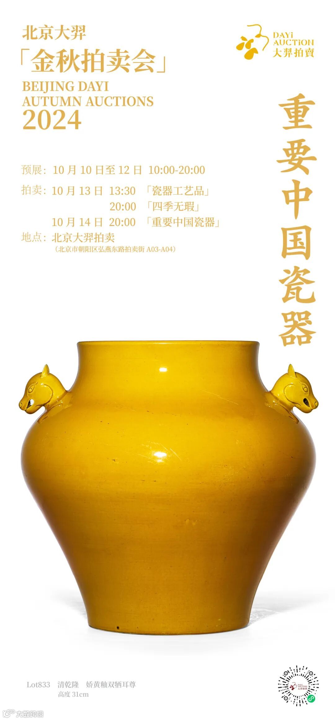 北京大羿2024年金秋拍卖会,宣德青花、嘉庆洋彩等「重要中国瓷器」...诸多古董佳器即将在本次金秋拍中集结亮相。
