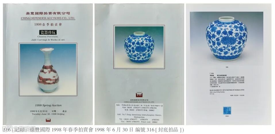 记录:鼎丰国际1998年春季拍卖会,1998年6月30日,编号316(封底拍品)