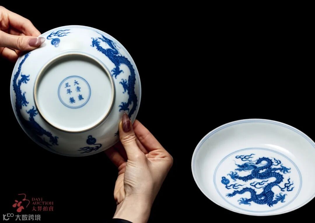 青花龙纹盘属雍正时期标准瓷器,为清代官窑的传统品种,自康熙至宣统历朝都有烧造。然而,若论品质之高及存世数量之少,雍正朝制品堪称佼佼者。雍正时期虽仅十三年,但在继承康熙朝制瓷工艺的基础上,实现了诸多创新与提高。康熙青花瓷风格挺拔、遒劲,而雍正青花瓷则以柔媚、俊秀的风格独树一帜,可用一个 “秀” 字来概括。这种风格的转变,不仅体现在瓷器的造型上,纹饰布局、绘画笔触等方面也尽显雍正时期的独特审美,宫廷造办处在传承中不断创新,赋予了青花龙纹盘新的艺术生命力。