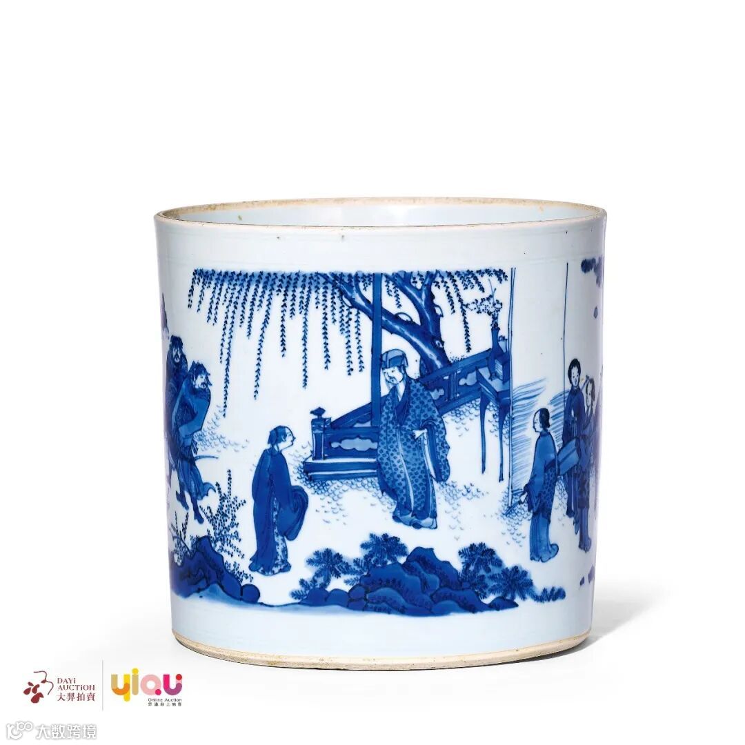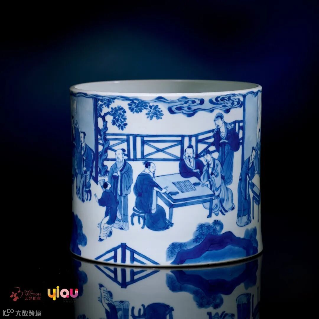 作为文房清玩之一的笔筒,于此时期突破传统材质的局限,以瓷为胎,开始大肆烧制,并且纹饰题材刻意迎合社会风尚以及文人的需求。体现出高超的制瓷水平与鲜明的文人、文化意趣。