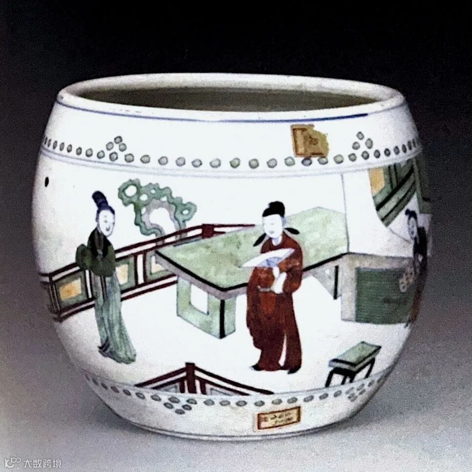 明末景德镇制瓷业面临巨大挑战:原料价格飞涨,技术工人流散,市场需求变化。但正是这些挑战,催生了工艺上的创新突破。康熙斗彩人物故事图鼓形罐则体现了釉上彩技术的进步。斗彩需先高温烧制青花,再填彩低温复烧,工艺复杂。斗彩始于明代,清代张九钺《南窑笔记》“彩色”条载言:“成、正、嘉、万俱有斗彩、五彩、填彩三种。先于坯上用青料画花鸟半体,复入彩料,凑其全体,名曰斗彩。填者,青料双勾花鸟、人物之类于坯胎,成后复入彩炉填入五色,名曰填彩。其五彩则素瓷纯用彩料画填出者是也。”