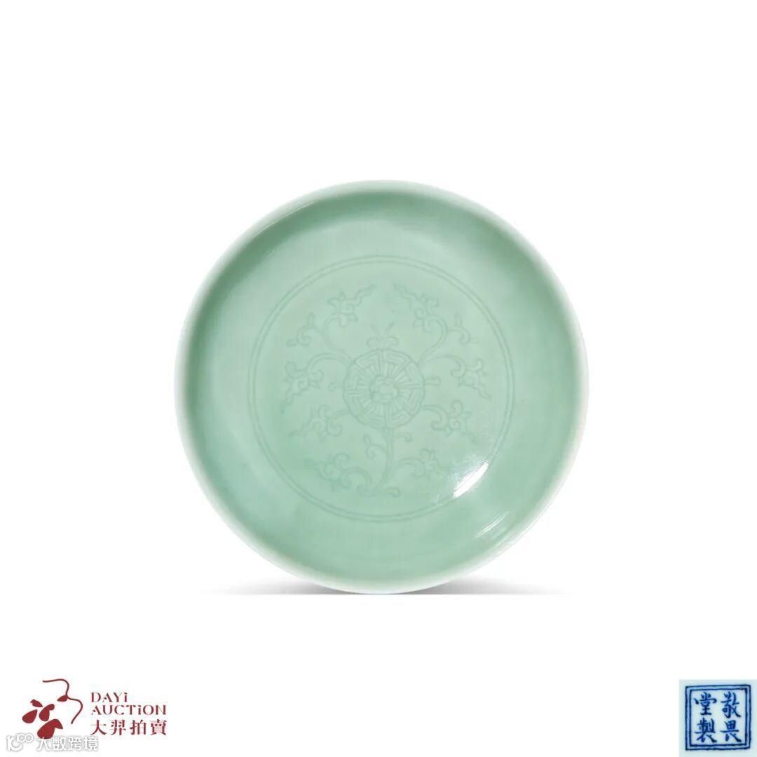 此盘圆口外敞,浅弧腹身,底圈足。足底青花书“大清雍正年制”六字三行楷书款。雍正皇帝极为推崇宋瓷一色纯净的风尚,促使本朝御瓷之颜色釉烧造甚多,仿古与创新俱精,美若七彩霓虹,斑斓夺目,松石绿釉乃是雍窑之新出,其以氧化铜为呈色剂,经低温烧造而成,为内府尊贵之色釉。