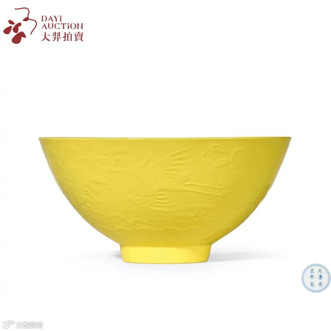 据清代文献记载,不同等级的皇室成员所使用的器物颜色、纹样与数量都有严格的规定,且本品属于雍正黄釉瓷器中的稀见品种,故而弥足珍贵。