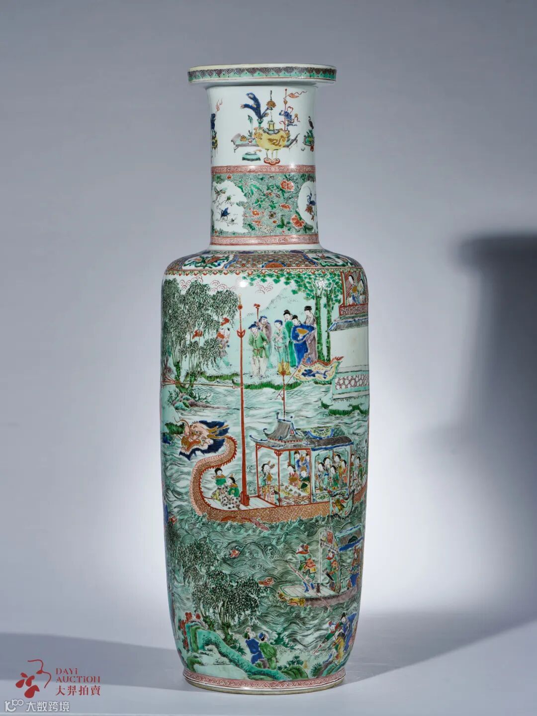 五彩“炀帝幸江都”故事图大棒槌瓶