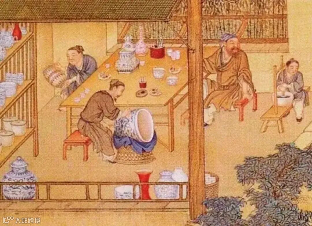 唐英在乾隆八年奉谕编撰完成的《陶冶图册》第十七编“圆琢洋采”中曾作如此评述:“圆琢白器,五采绘画,摹仿西洋,故曰洋采。须素习绘事高手,将各种颜料研细调和,以白瓷片绘染烧试,必熟谙颜料、火候之性,始可由粗及细,熟中生巧,总以眼明、心细、手准为佳。所用颜料与法琅色同,其调色之法有三:一用芸香油,一用胶水,一用清水。盖油色便于渲染,胶水所调便于搨抹,而清水之色则便于堆填也。”
