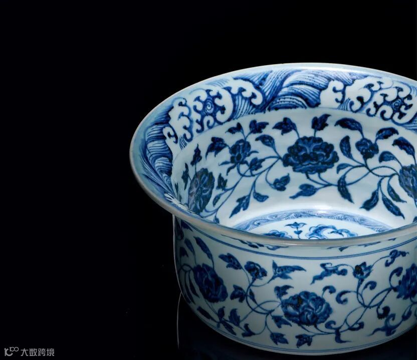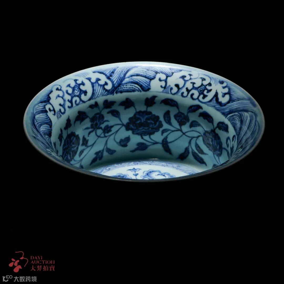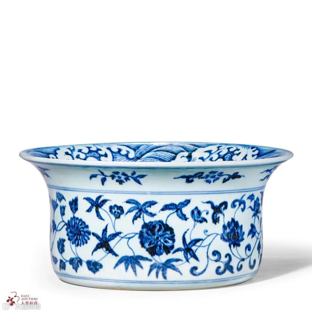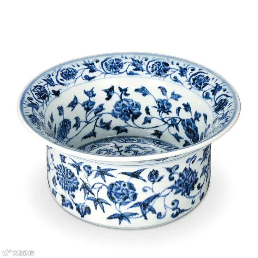 作为重点博物馆的馆藏之宝,在市场上出现的次数更是屈指可数,2017年香港佳士得释出一件明永乐 青花缠枝四季花卉纹折沿洗,成交价为RMB 1233.95万元。时隔多年,香港佳士得在2023年又释出一件成交价 HKD 3183.5万元,可见此类拍品的重要程度。