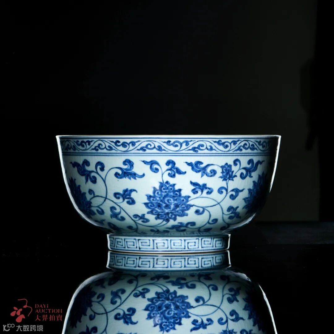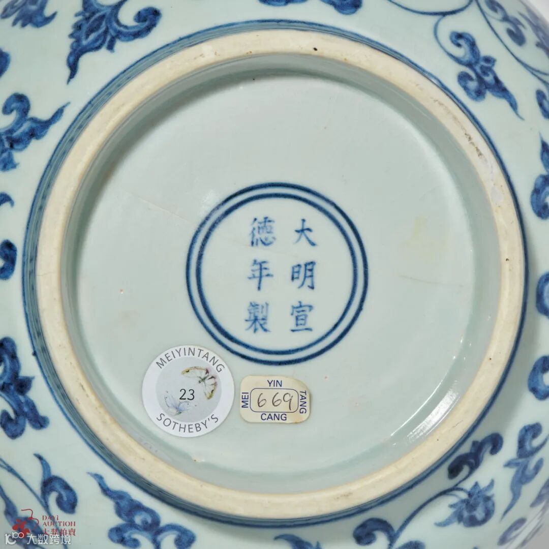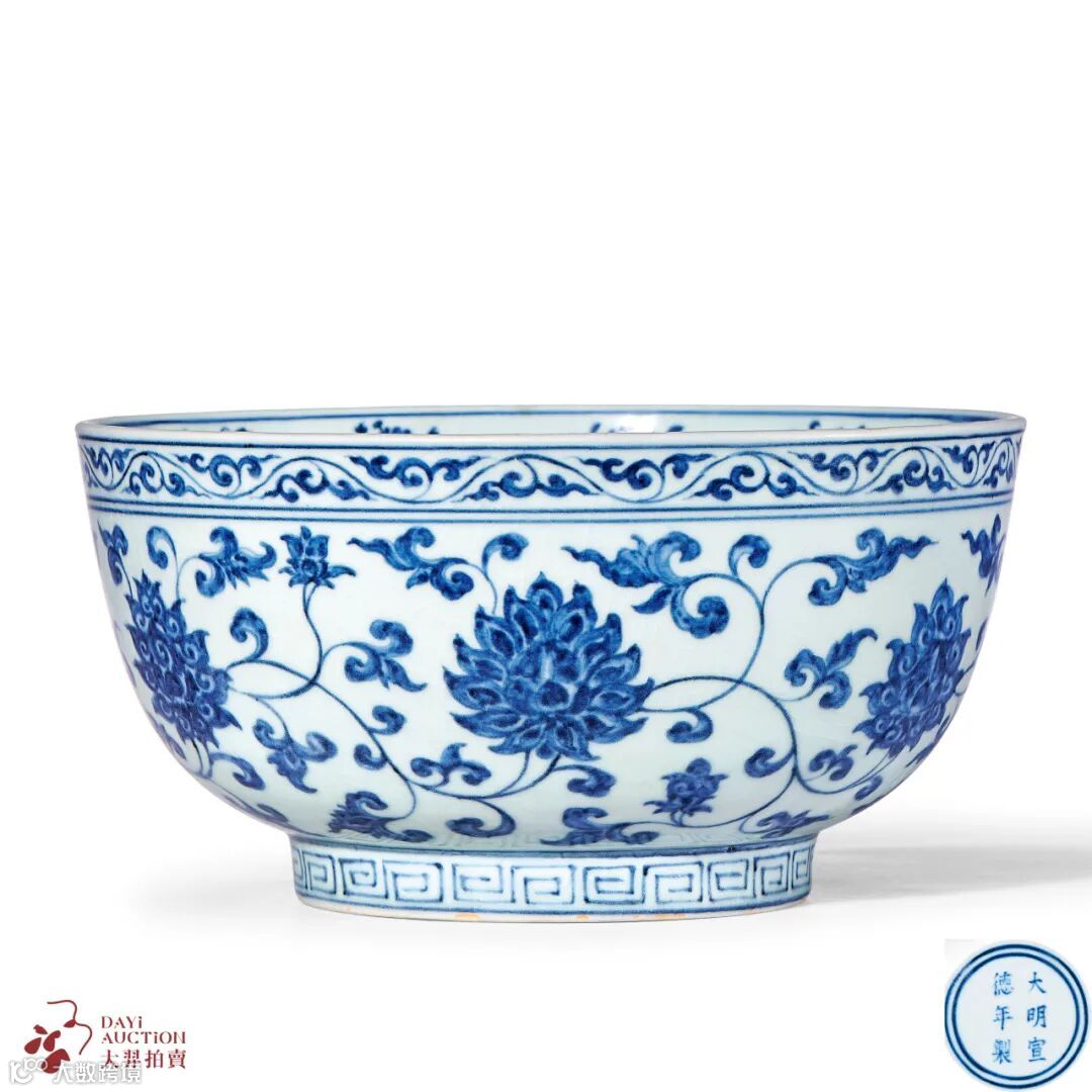 作为重点博物馆的馆藏之宝,在市场上出现的次数更是屈指可数,2017年香港佳士得释出一件明永乐 青花缠枝四季花卉纹折沿洗,成交价为RMB 1233.95万元。时隔多年,香港佳士得在2023年又释出一件成交价 HKD 3183.5万元,可见此类拍品的重要程度。