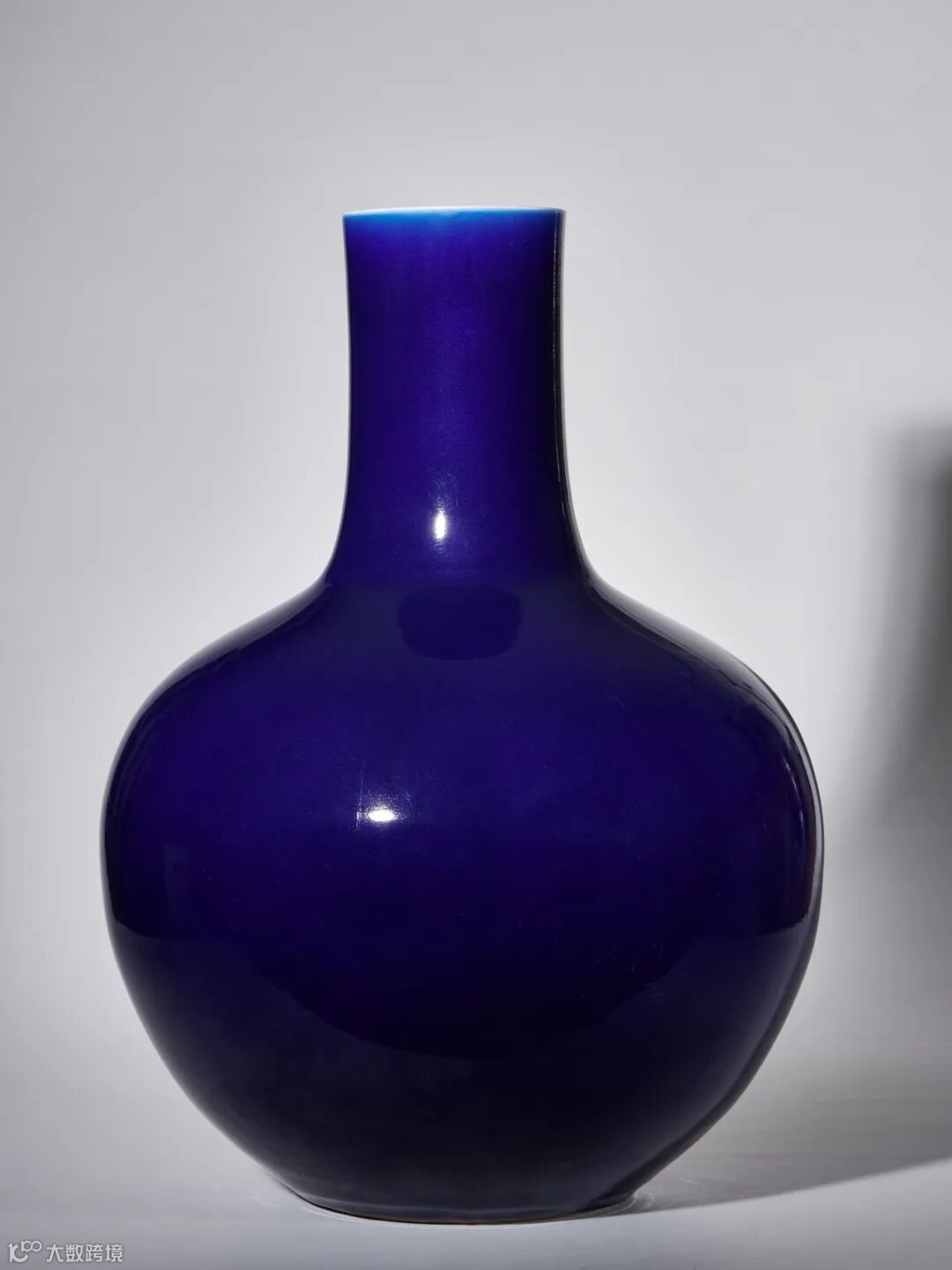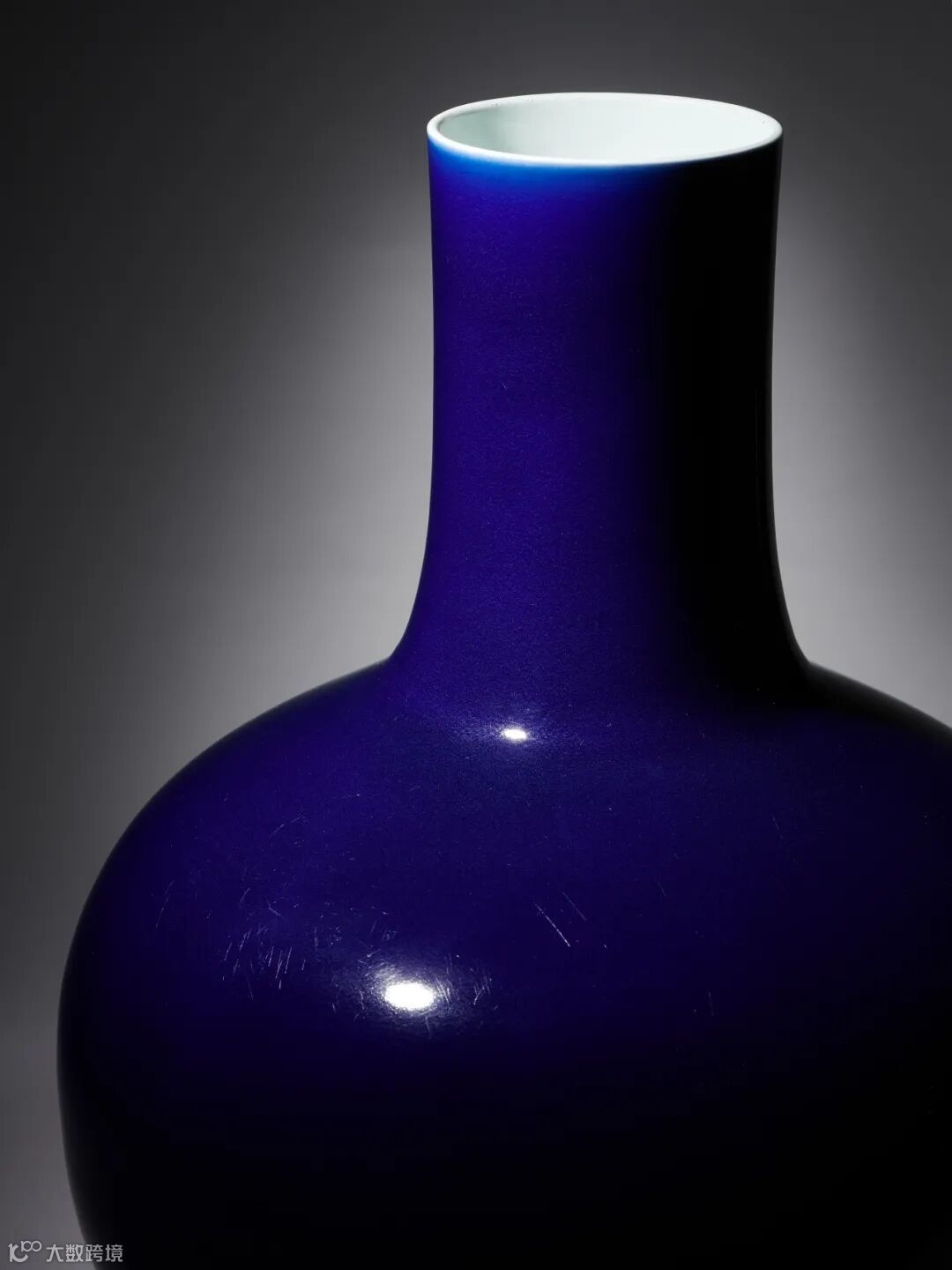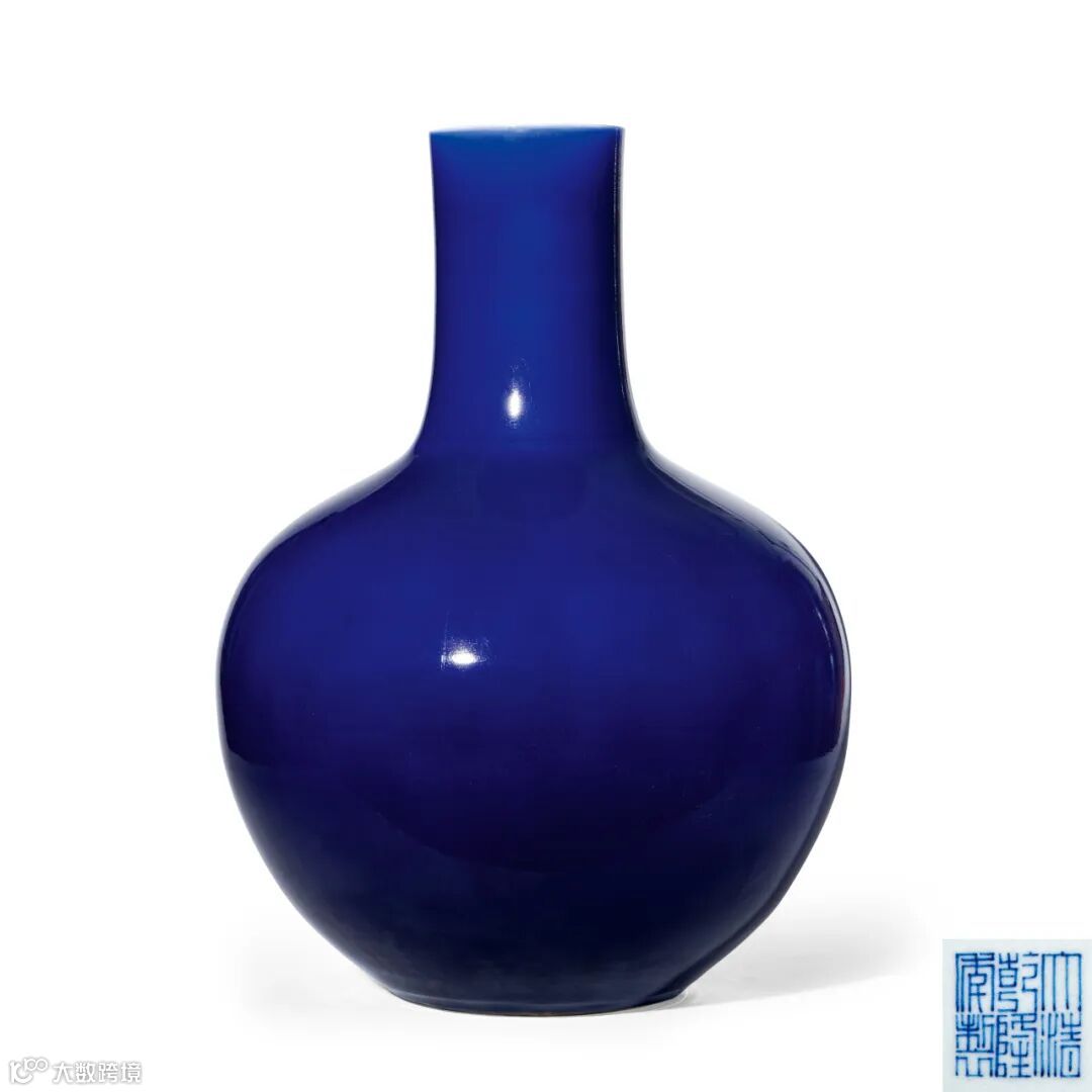 此外,2010年一件「清乾隆霁蓝釉大天球瓶」在北京拍卖会中以448万成交,此外保利艺术博物馆于2018年9月份举办的“大朴尚简——明清单色釉瓷器菁华展”展览中亦有一件与之类似,为北美十面灵璧山居所藏,可资比较。