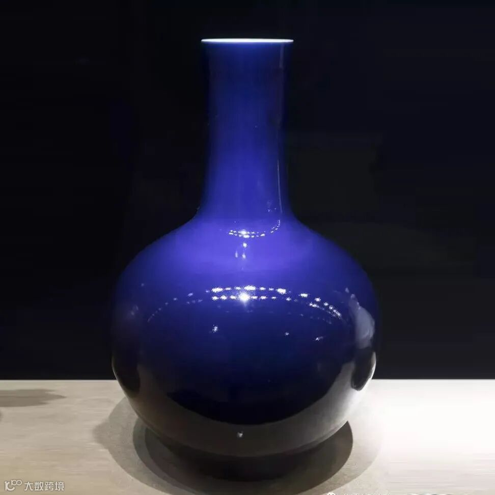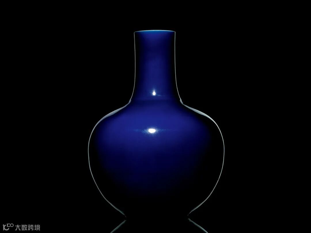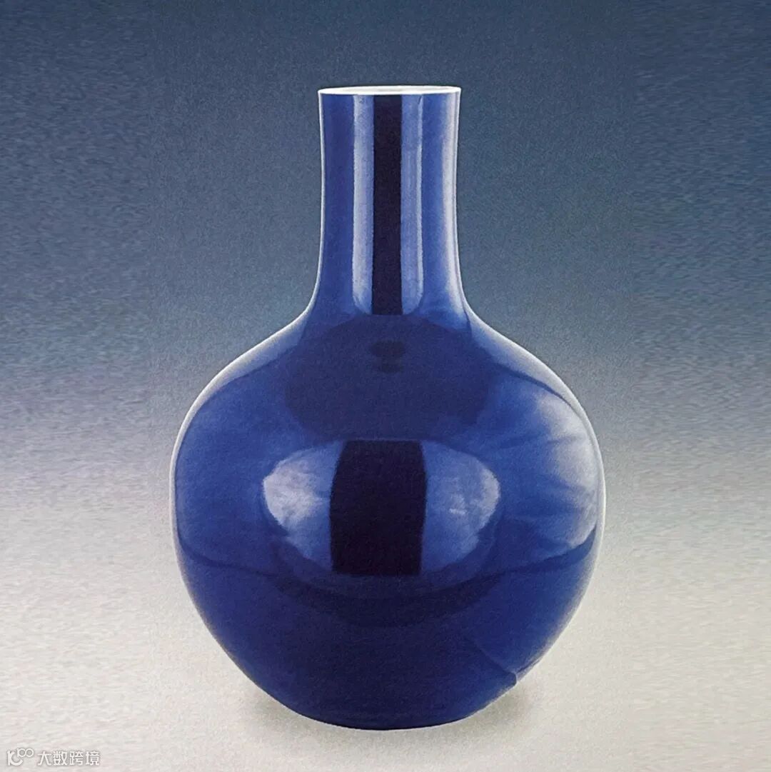 此外,2010年一件「清乾隆霁蓝釉大天球瓶」在北京拍卖会中以448万成交,此外保利艺术博物馆于2018年9月份举办的“大朴尚简——明清单色釉瓷器菁华展”展览中亦有一件与之类似,为北美十面灵璧山居所藏,可资比较。