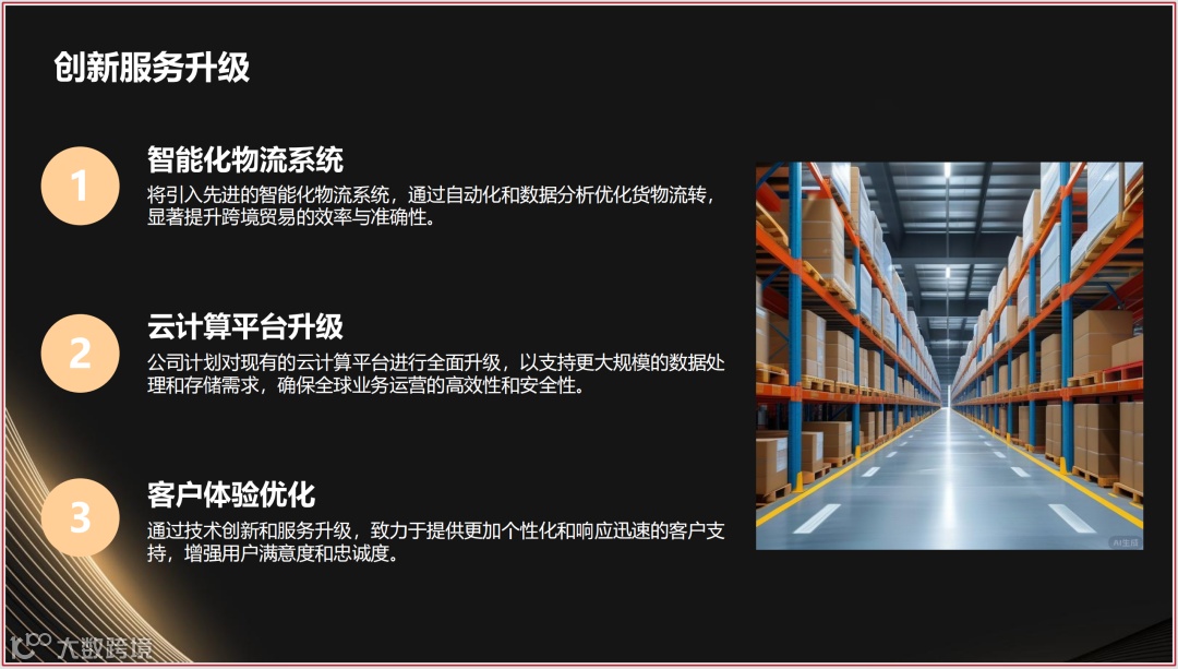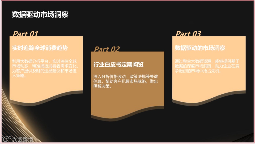 - 依托大数据分析平台,实时追踪全球消费趋势,为客户提供选品建议与市场进入策略。