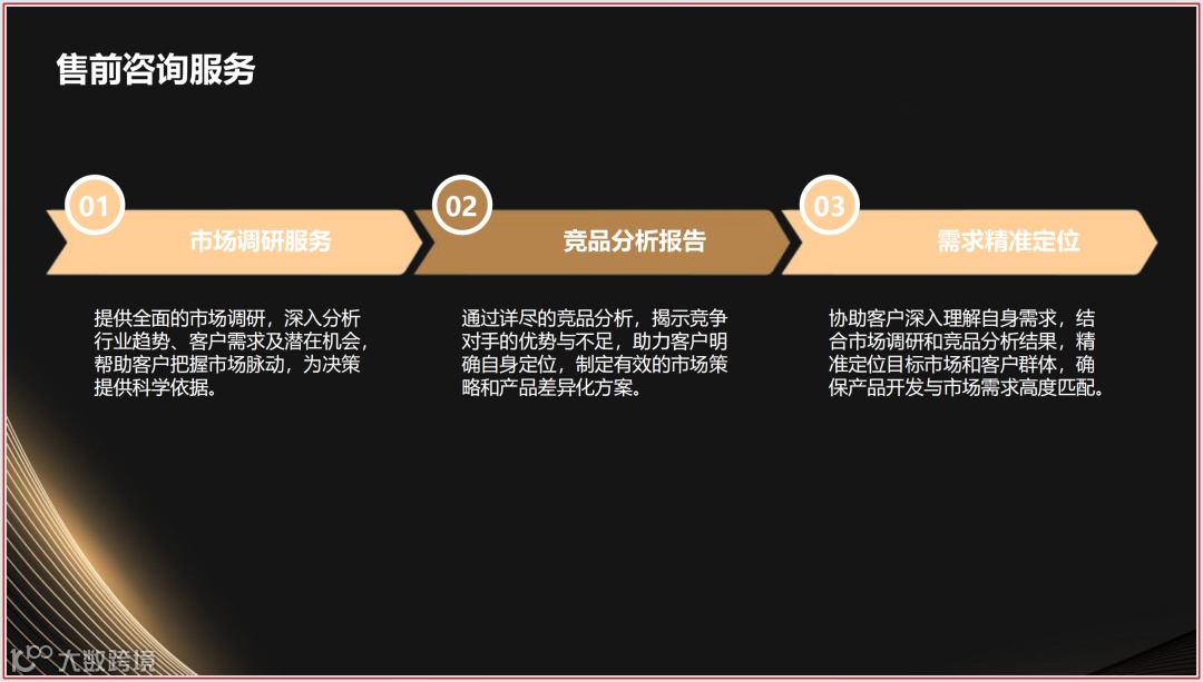 - 售前咨询:免费提供市场调研、竞品分析报告,协助客户精准定位需求。
