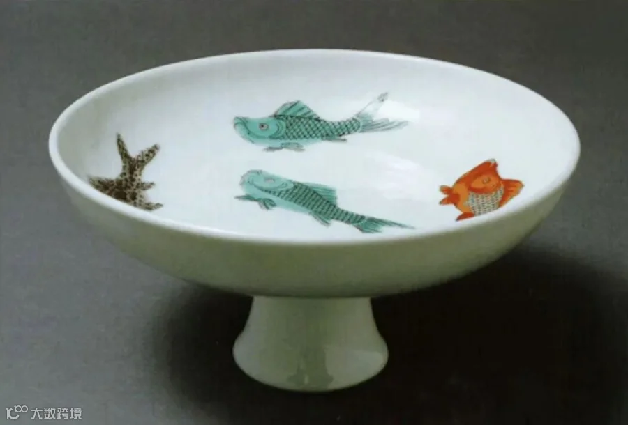 附图:香港艺术馆藏 清乾隆 五彩鱼纹高足盘