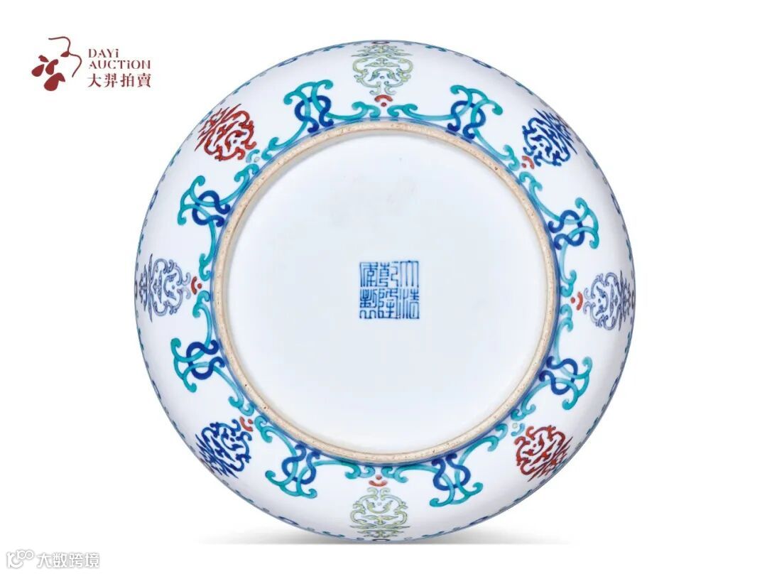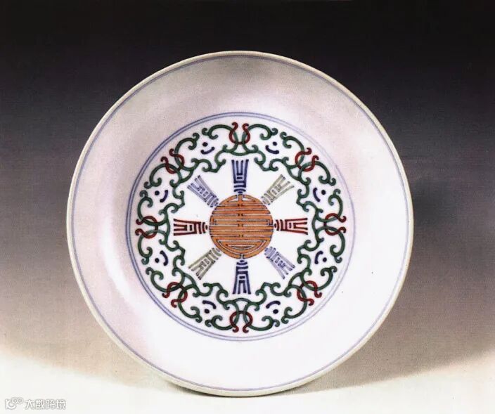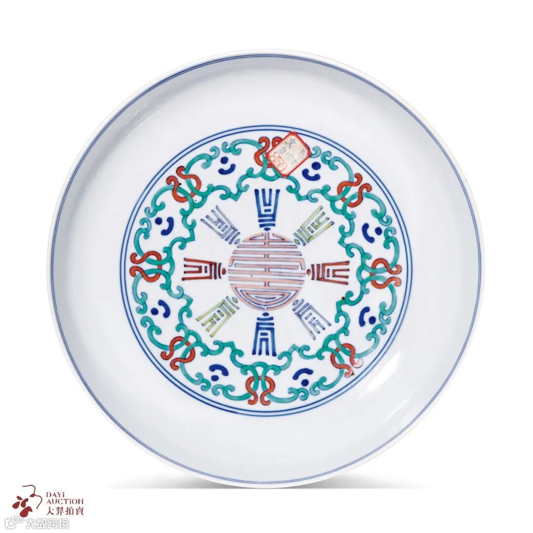 此类斗彩团寿字盘是清代御窑传统品种,自清雍正朝创烧直至晚清历代都有烧制。拍品无论从纹饰布局、色彩搭配及填彩工艺等都达到了极高水平,堪为乾隆官窑同类作品中典范之作。