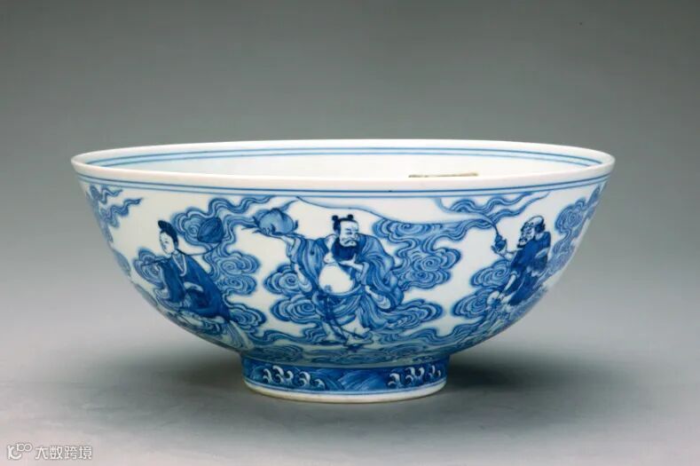 青花八仙图碗为清代官窑传统品种,创自雍正时期,乾隆朝将细节稍作变化,使其定型成为后世典范。
