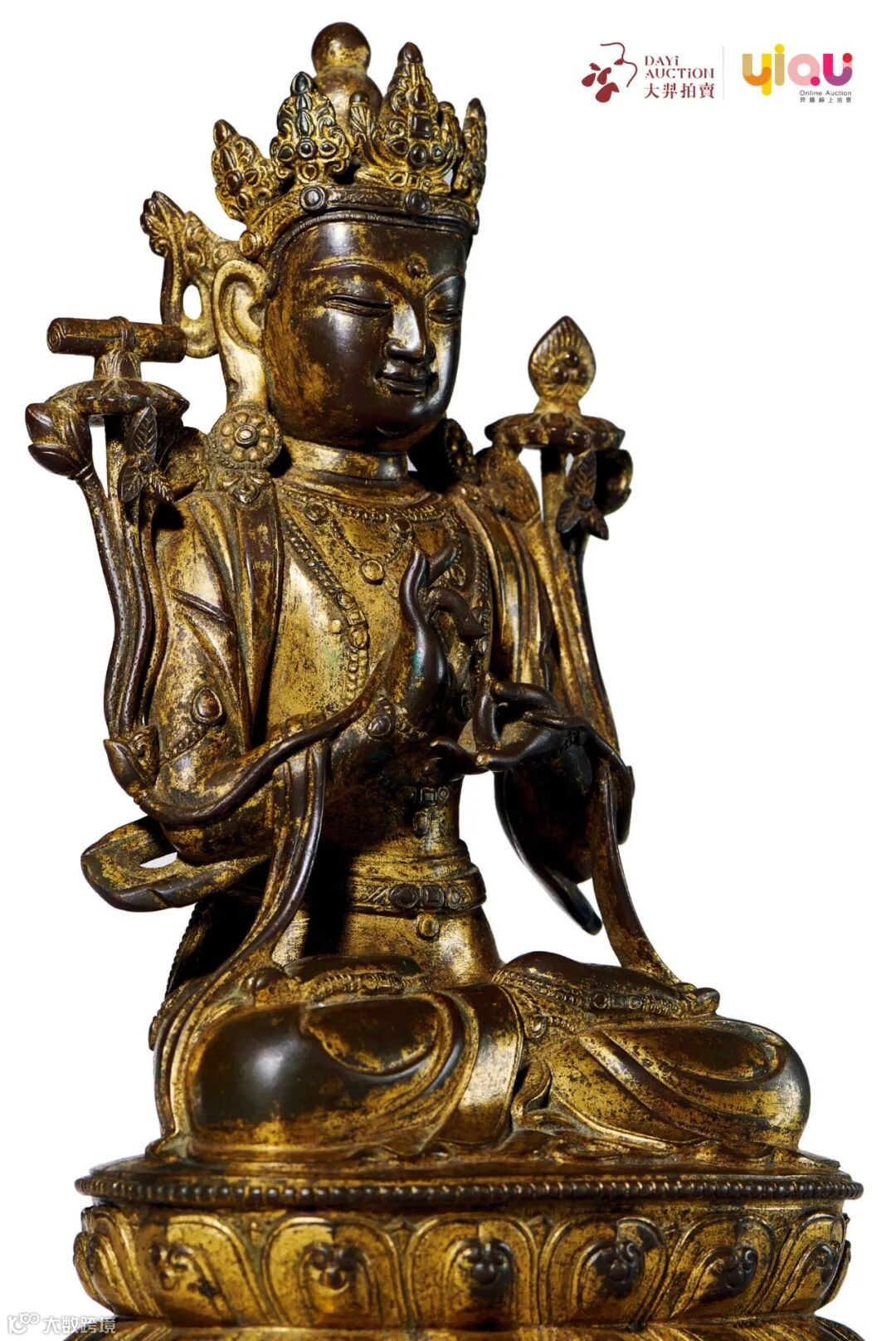此尊菩萨像为明代著名造像大师陈彦清所作,莲座底部边缘刻有“钱塘陈彦德造”六字铭文。其与已知的多尊钱塘款造像风格完全一致,既有中原地区传统风格的表现,可以说融合了汉藏两种艺术形式和表现手法。
