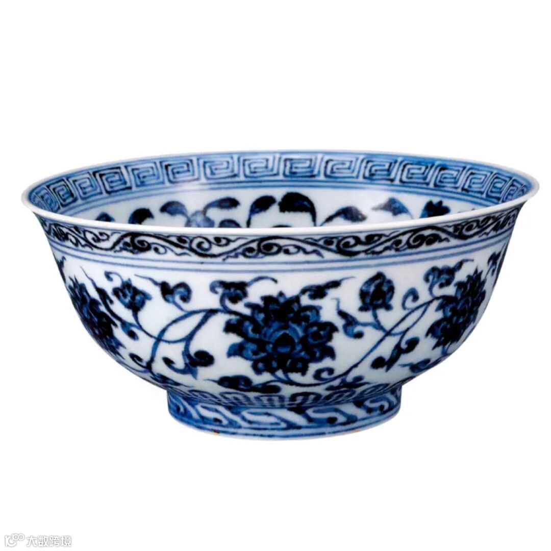 明宣德 青花海涛缠枝莲纹碗
