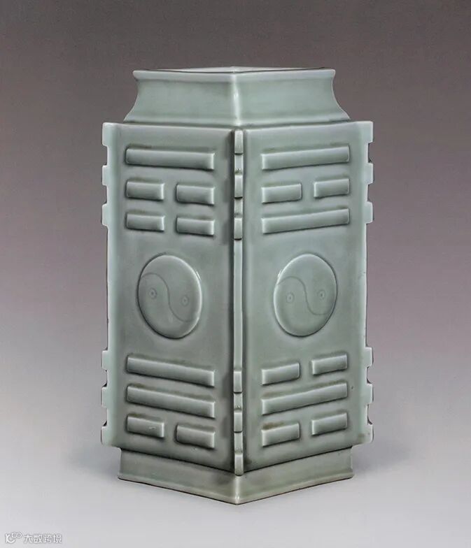 附图:天物馆藏 清光绪 豆青釉八卦出戟四方扁瓶