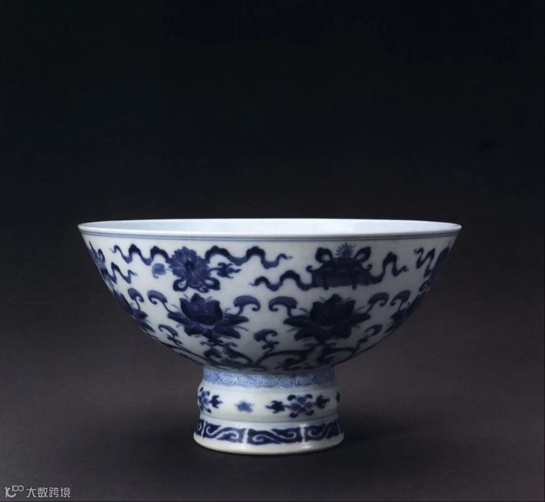 附图:北京故宫博物院藏 清雍正 青花莲托八宝纹高足碗