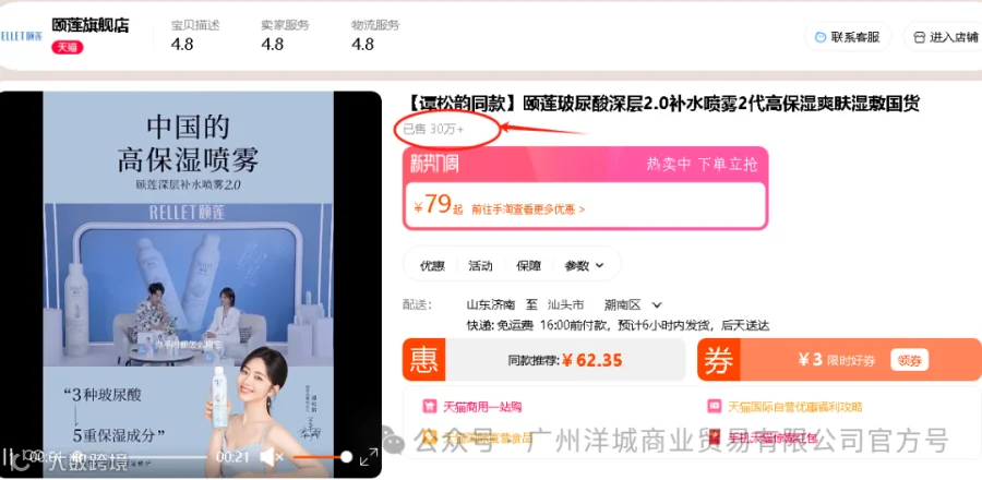 姊妹商品颐莲“防晒小空调”,同样超高性价比引流爆款