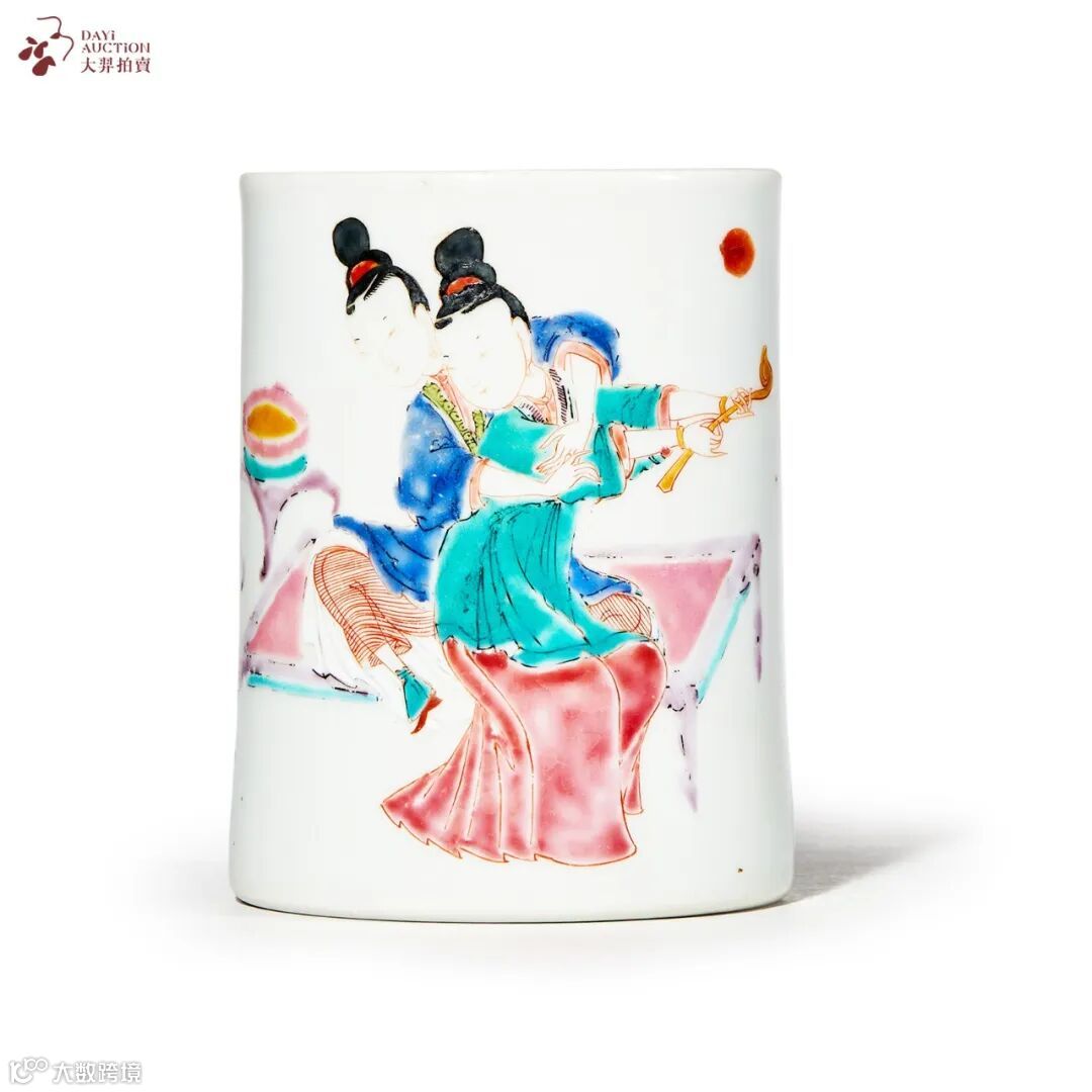 清雍正 粉彩二乔图笔筒